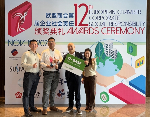 BASF Coatings has been awarded with the Green Impact Pioneer Award at the European Chamber’s 12th corporate social responsibility (CSR) Awards held in Nanjing, China. The ceremony highlighted the unwavering corporate social responsibility across the European business community in China and honors excellence in sustainability across multiple categories.